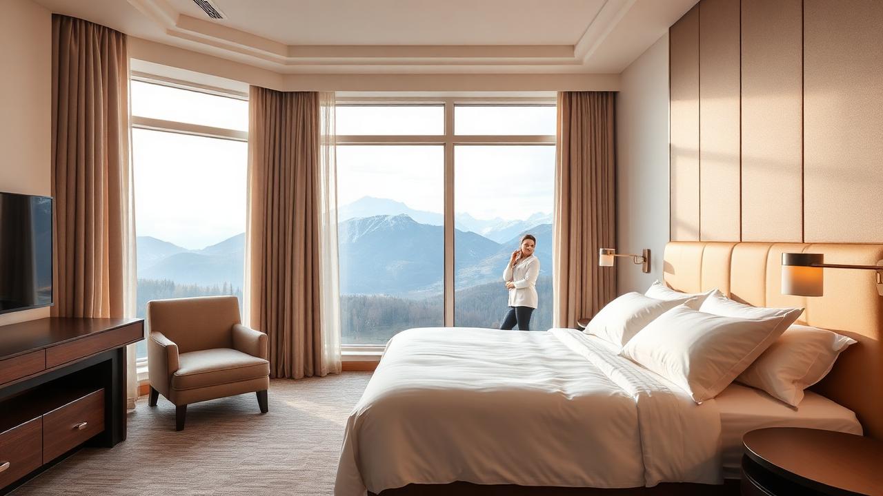 Просторий номер підвищеного комфорту з панорамним видом на гори. Площа 32-38 м².